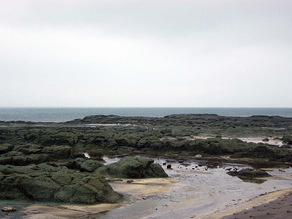 Senjojiki Coast. Many dark rocks are rugged from the sea.